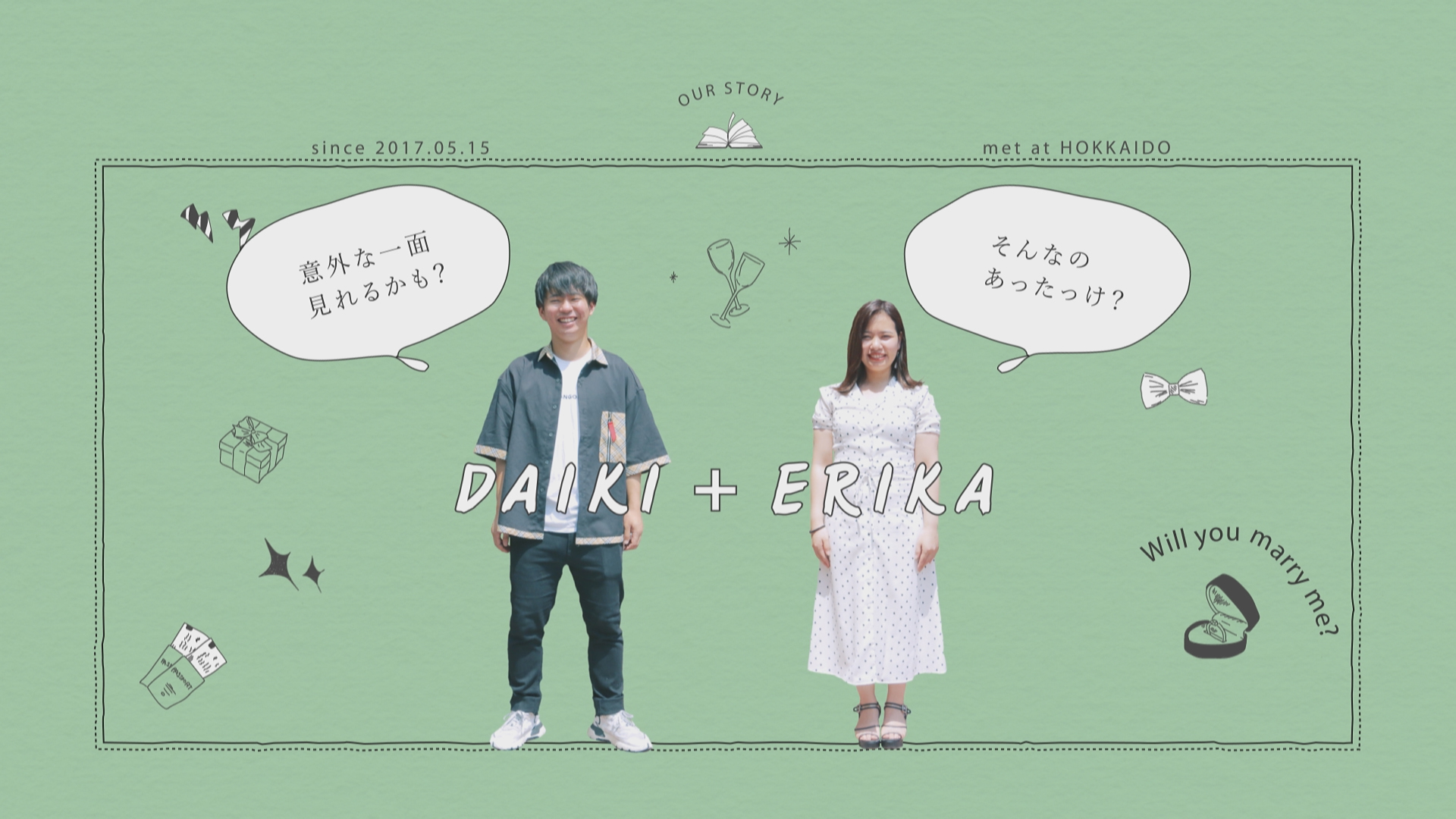 新郎新婦様の切り抜き写真によるプロフィールムービーです